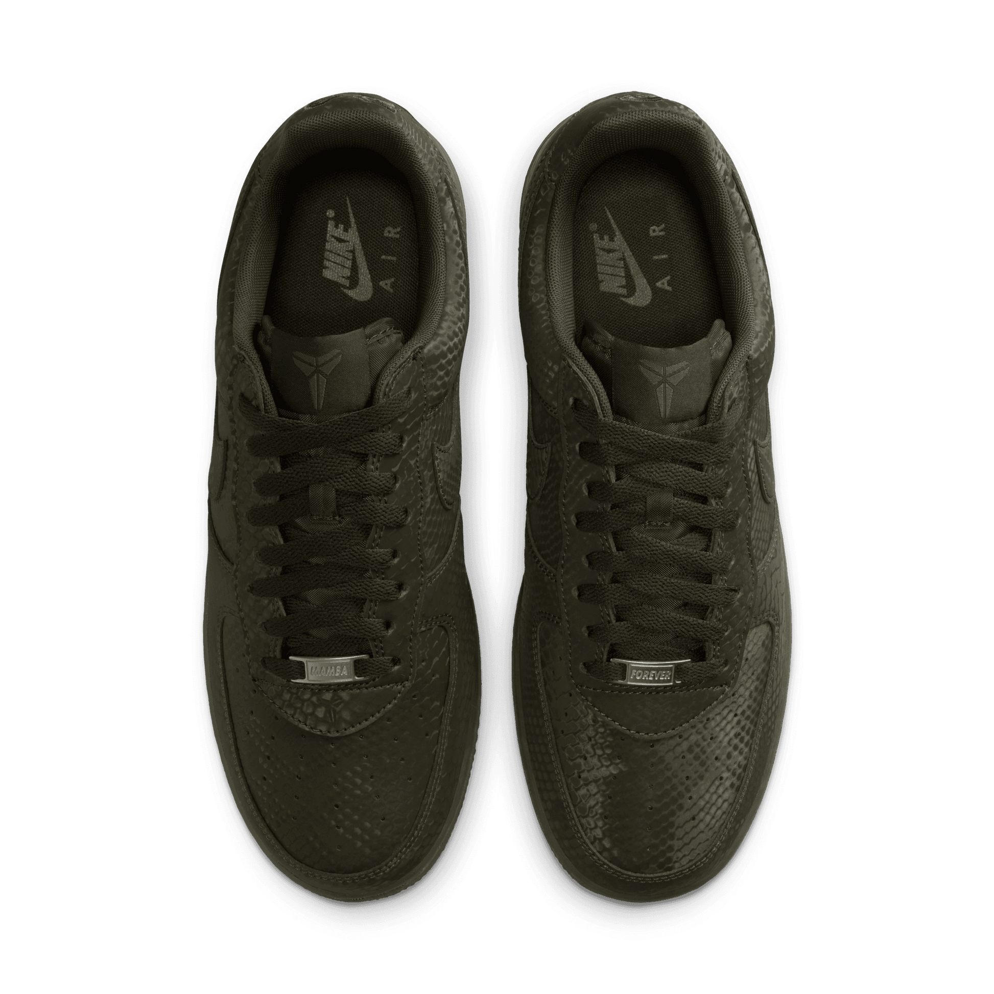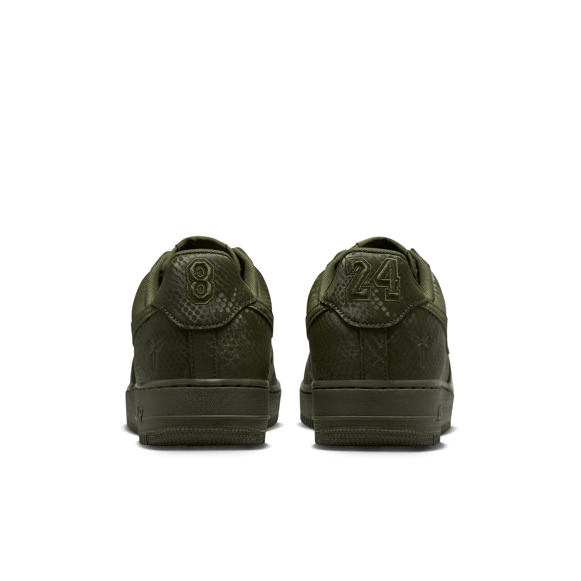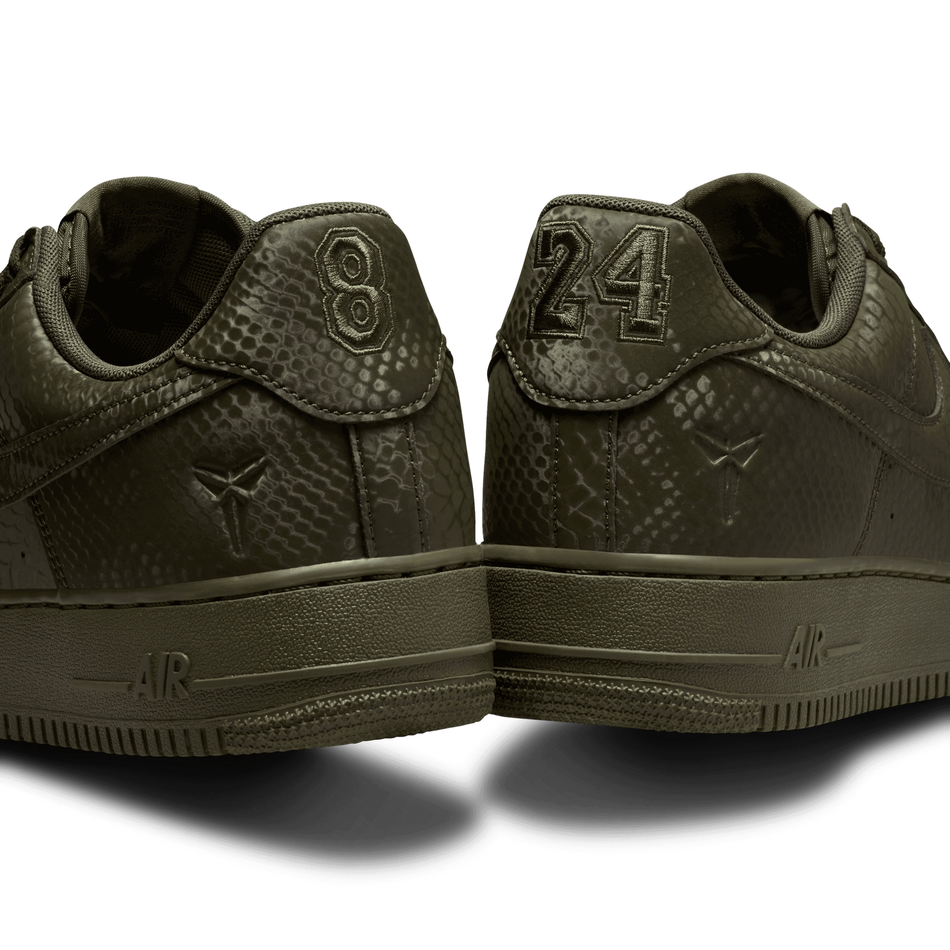 Esta edición especial de los AF1 está impregnada del ADN de Mamba, como el estampado de piel de serpiente por toda la prenda, dando un giro distintivo a un clásico de siempre. Los bordados "8" y "24" en el talón rinden homenaje a los números retirados del jersey de Kobe, mientras que los logotipos Sheath en la lengüeta y la parte exterior del talón añaden un toque de marca exclusivo. Completados con dubraes de cordones especiales "Mamba Forever", estos Kobe AF1 continúan el legado.